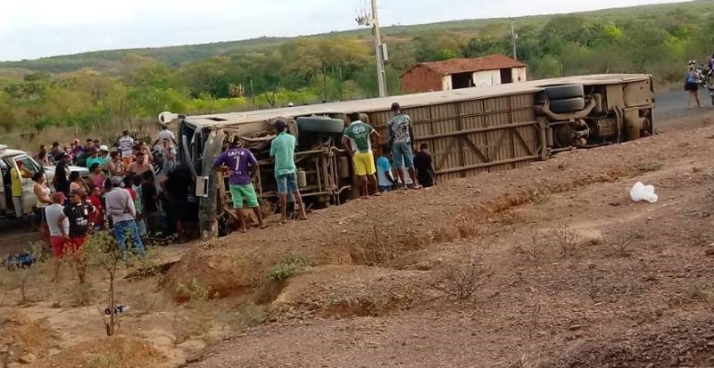 Ônibus do Cantor Edson Lima tomba perto de Simplício Mendes Reprodução Portal B1
