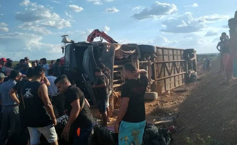 Ônibus do Cantor Edson Lima tomba perto de Simplício Mendes